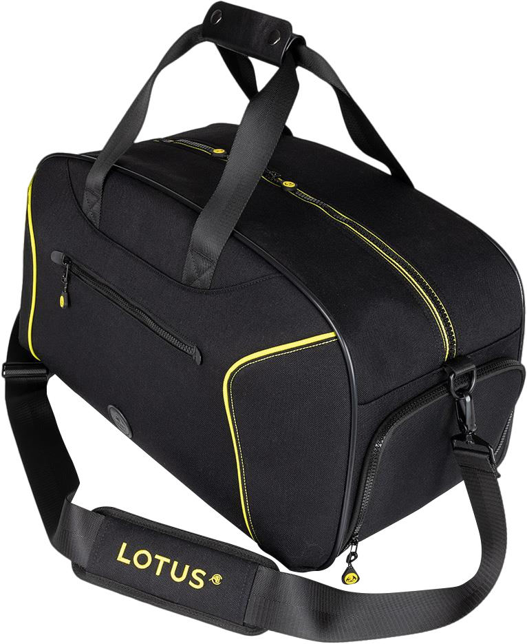 Borsone Lotus adatto ideale per Lotus Emira e Lotus Eletre sia per essere riposta nel bagagliaio che dietro i sedili. Presenta Lotus Roundel sulla cerniera esterna e in siliconem tirazip, nastro zip a righe gialle e tessere fodera in fantasia Lotus monogrm. La Holdall ha 1principale scomparto principale, scomparto laterale separato per riporre le scarpe e dispone anche di un interno zippato tasca.