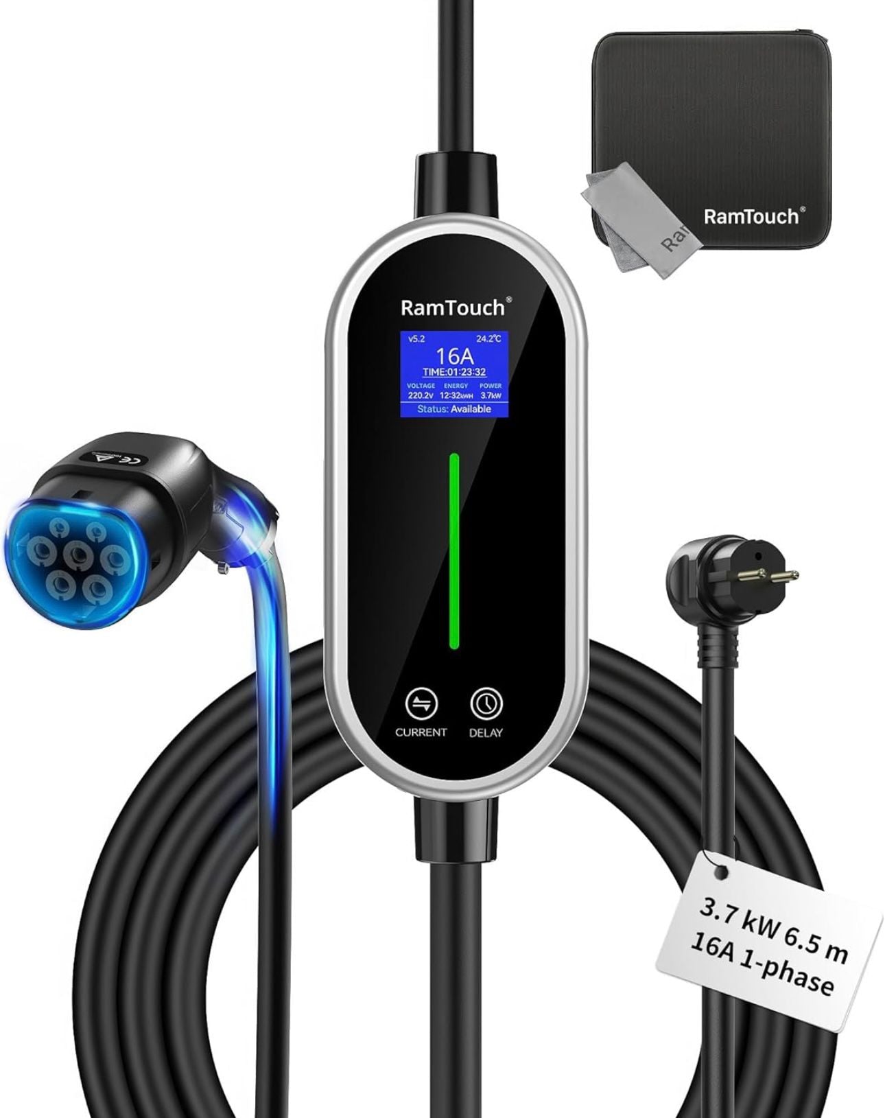 - Caricatore domestico 22 km di autonomia in un'ora! Questo caricatore con spina Schuko da 16A carica fino a 2 volte più velocemente di un modello standard da 8A. Il cavo di tipo 2 garantisce ampia compatibilità in Europa. Potenza massima di 4 kW a 220-250 volt. Collega a qualsiasi presa standard da 16A—nessuna connessione complicata