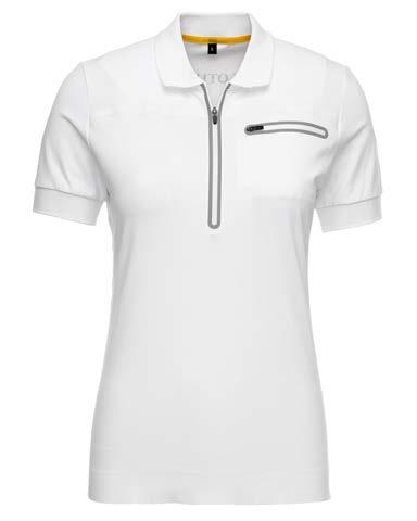 Ladies’ short sleeve polo shirt in technical stretch piqué, athletic fit. Using breathable material and waterproof accessories, wehave created an extremely technical garment which is assembled 90% seamless