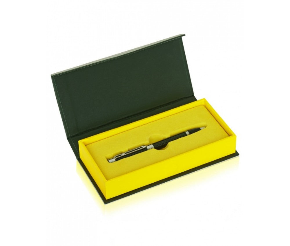 Lotus redifines the ball point pen in sleek black carbon fibre effect, combined with a stylish steel finish. Ergonimically designed for the optimum writing position and handsomely gift boxed, this pen is an ideal gift or purchase for the Lotus enthusiast.