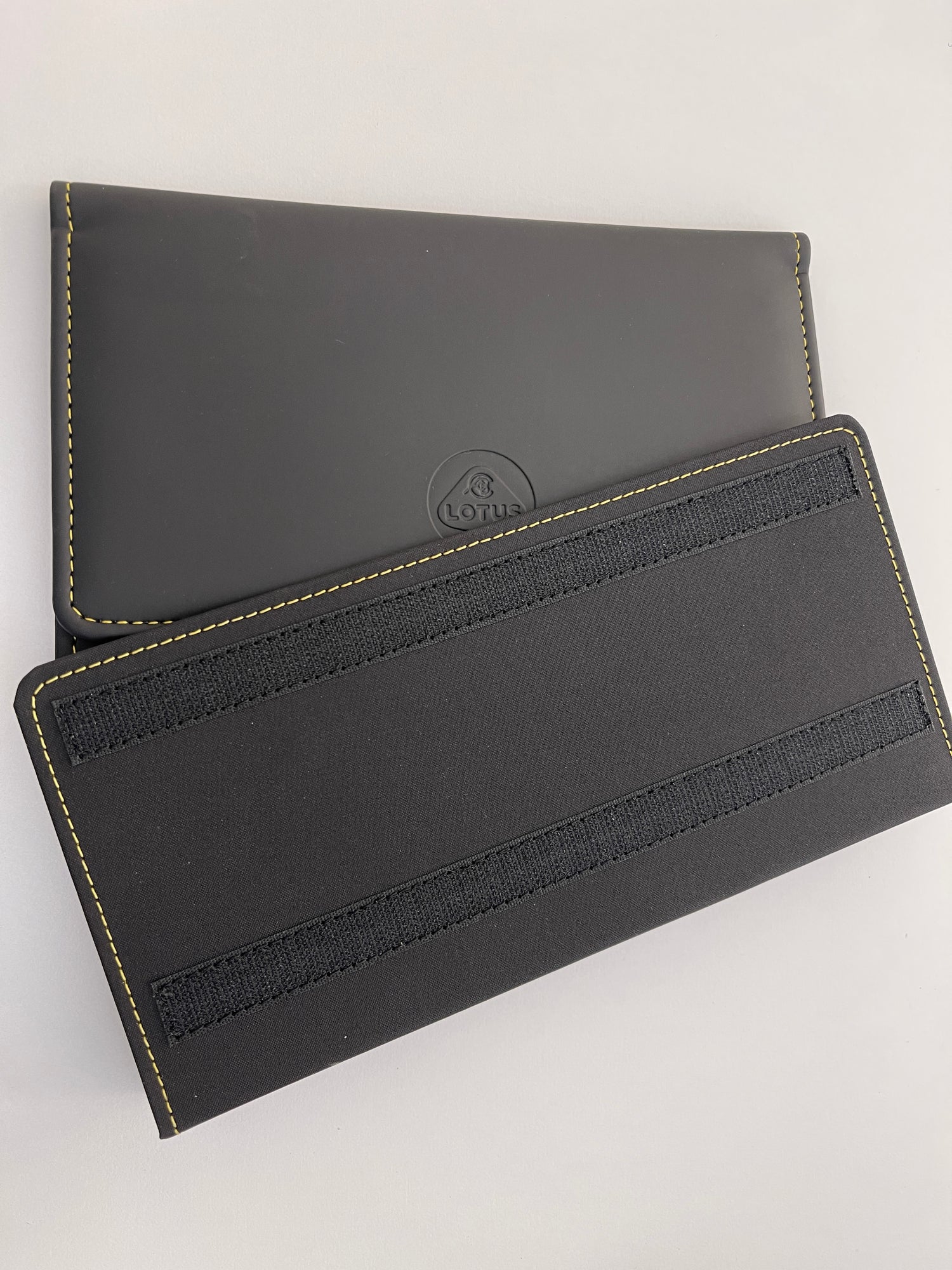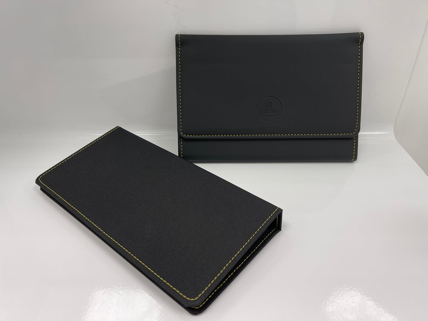 LOTUS COVER HOLDER Handbook con chiusura magnetica. -per tutte le Lotus dal 1996 a 2020 (Di serie su modelli 2020-2021) Un aggiornamento molto utile alla vostra Lotus per conservare in sicurezza le istruzioni, la garanzia, il libretto di circolazione e l'assicurazione. In dotazione di serie sulle vetture dal 2020 in poi sostituisce la precedente custodia in plastica verde per le vetture prodotte dal 1996 al 2019. Realizzato in pelle nera, con cuciture a contrasto Yellow e con Logo Lotus marchiato. Resiste alla temperature elevate ed è provvista di una custodia con felcro per moquette Lotus e chiusura magnetica