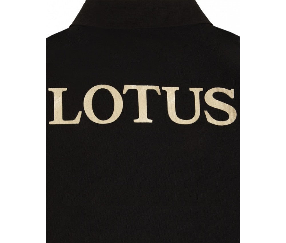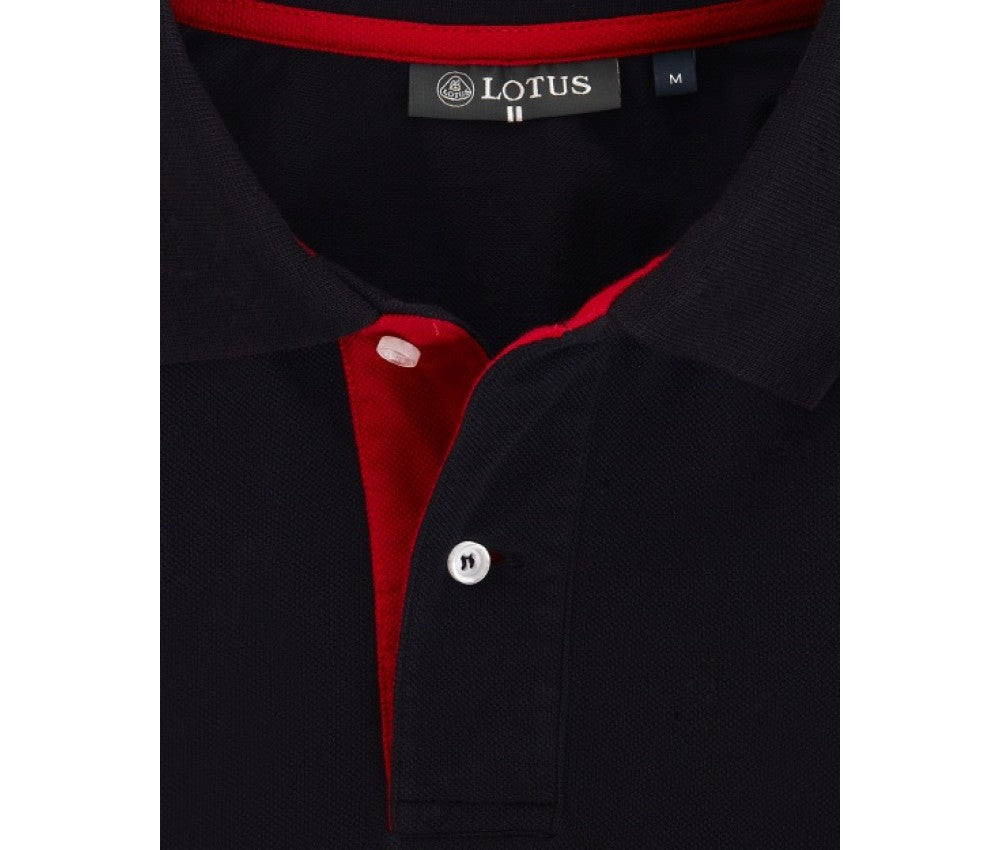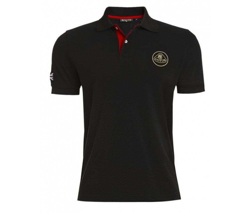 Polo classica da uomo, vestibilità regolare, in cotone nero, con abbottonatura rossa a due bottoni a contrasto. Il logo Lotus è ricamato in oro sul petto per richiamare i nostri storici corridori Black and Gold e l'Union Jack sulla manica. 5055421508470