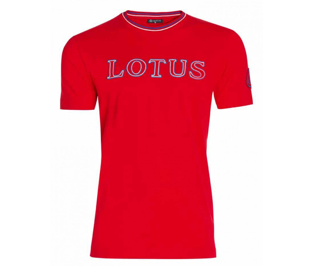 Short sleeve T-shirt with twin contrast colours on collar. Embroidered chain stitch ‘LOTUS’ lettering across chest in matching twin contrast colour. Coordinated Lotus roundel patch on sleeve. Material 100% cotton. A great piece for every day casual wear. cod. 5055421525156