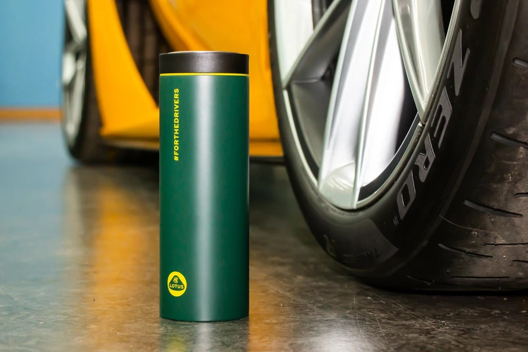 Se amate gli oggetti da collezione Lotus non ci sarà una bottiglia termica più bella di questa! Prodotta in serie limitata per il Goodwood Festival of Speed la nuova bottiglia Lotus ha una apertura a pulsante per utilizzarla in auto anche con tappo chiuso. Mantiene a lungo la temperatura delle bevande sia calde che fredde