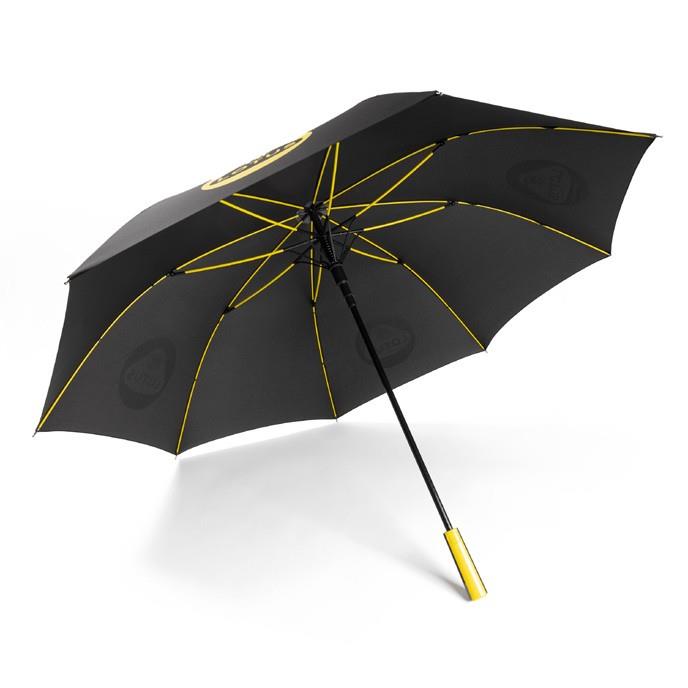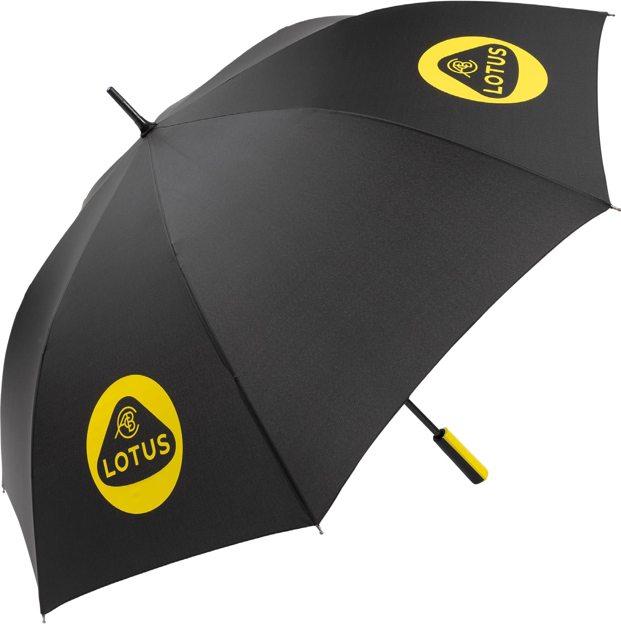 Lotus auto open 30’’ golf umbrella with windproof ribs and shoulder bag, umbrella features the Lotus Roundel printed onto the outer panels.