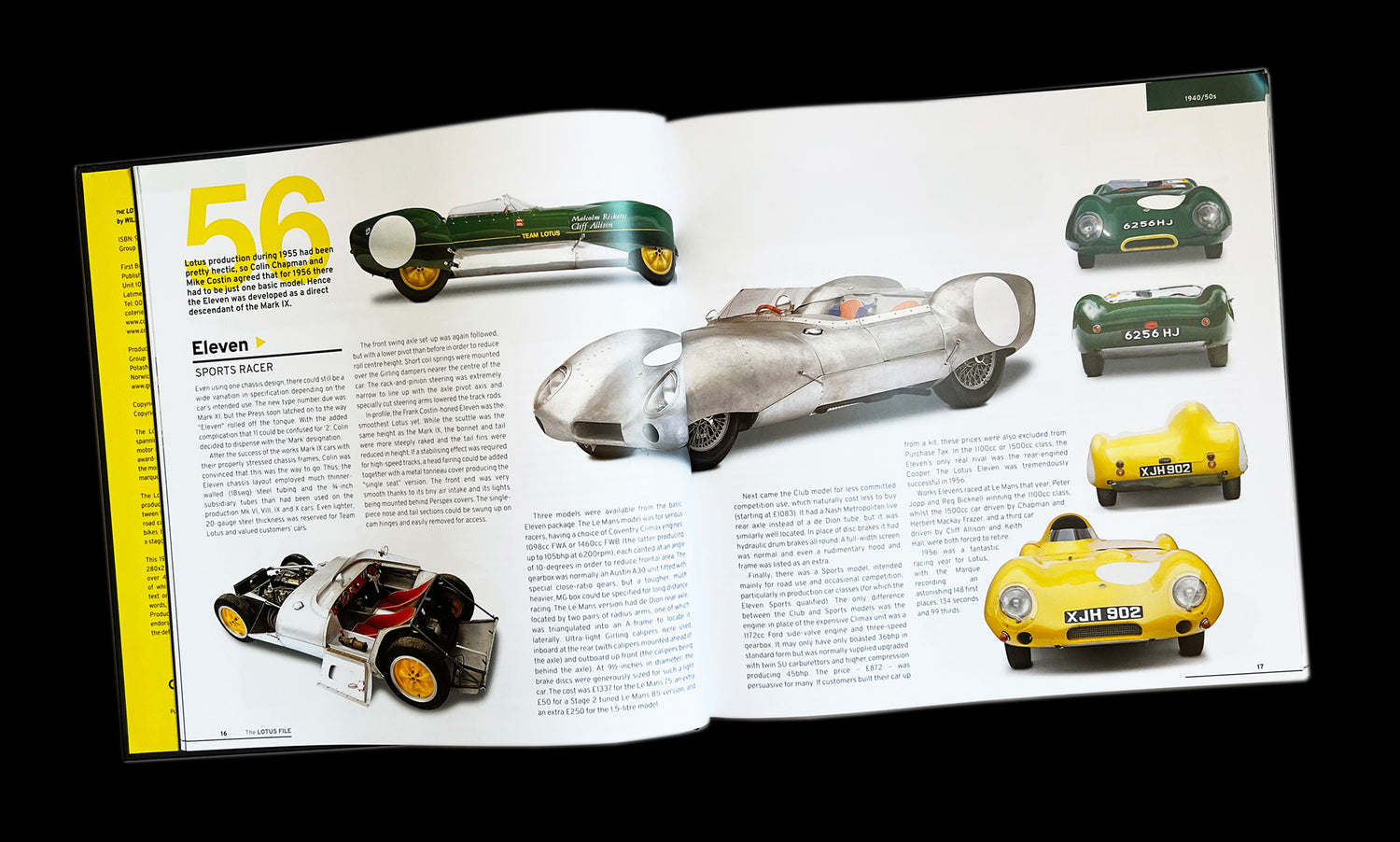 Questo nuovo libro con copertina rigida da 11 pollici, 200 pagine, LOTUS FILE, copre tutti i modelli prodotti da Lotus Cars e Team Lotus tra il 1948 e il 2022, il tutto in un nuovo formato compatto, conciso e leggero. Presenta ogni auto da strada, auto da corsa e persino le soapbox e le moto costruite da entrambi i rami del marchio Lotus. Un totale di 259 modelli da Mark I a Type 131 Emira e Type 132 Eletre. Prodotto su licenza del Gruppo Lotus, è il record definitivo di ogni Lotus, inclusi tutti i modelli Elise, Exige ed Evora più recenti